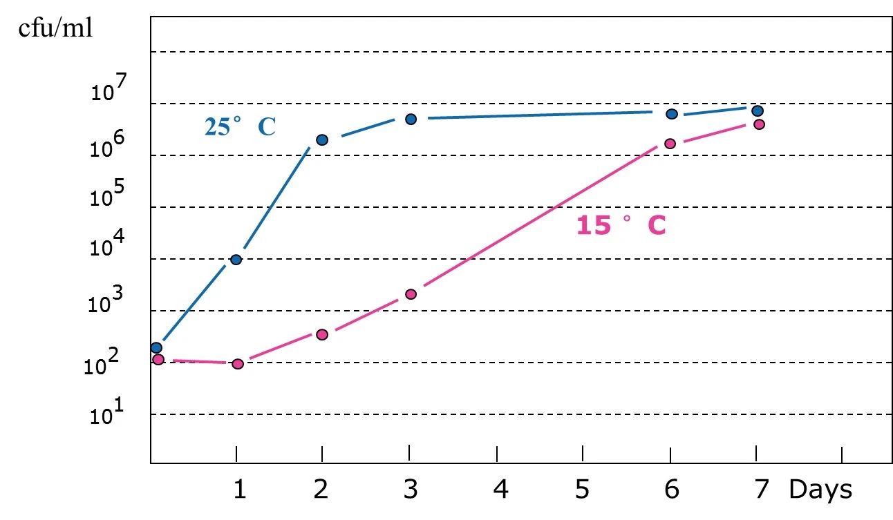 5. 避免發(fā)熱: 好的分配泵應(yīng)該在連續(xù)工作10個(gè)小時(shí)的情況下也不會(huì)造成溫度的升高,因?yàn)榉峙浔玫陌l(fā)熱會(huì)導(dǎo)致水溫的升高,為微生物的繁殖營造了適宜的條件。溫度對微生物繁殖速度的影響,如表2所示。